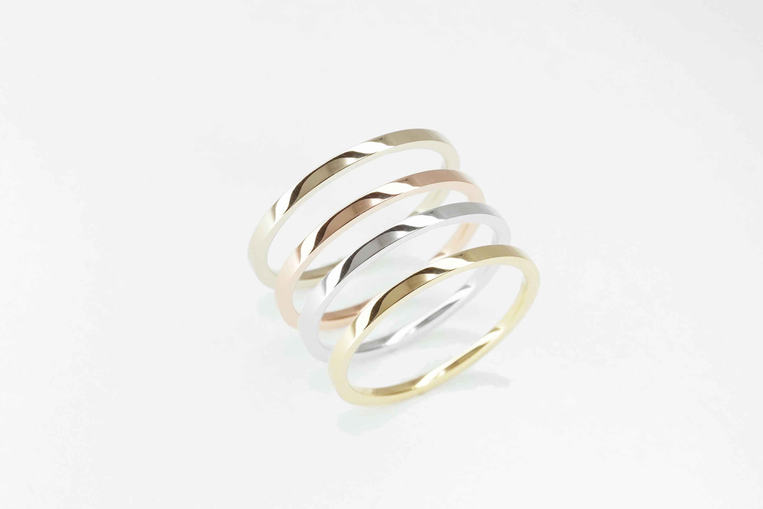 リングのトップが一周四角・□になっているシンプルなデザイン。